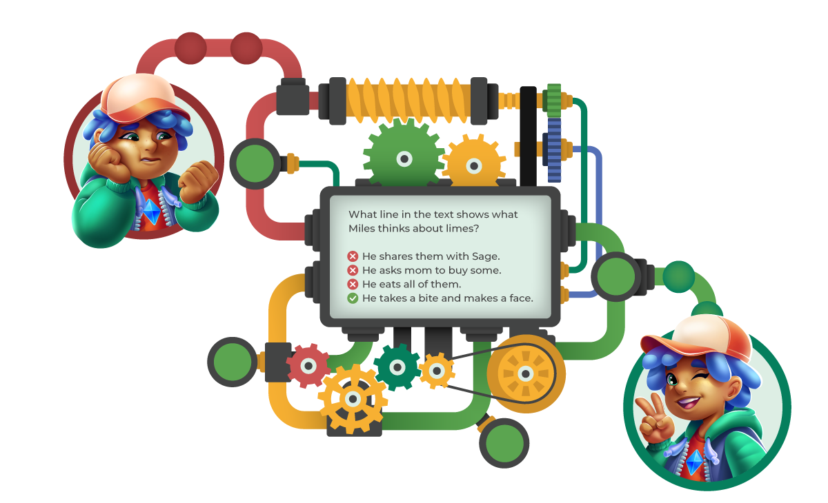 Our adaptive learning engine disguises rigorous reading practice as an engaging game. Students answer comprehension questions without ever feeling like they're being tested.